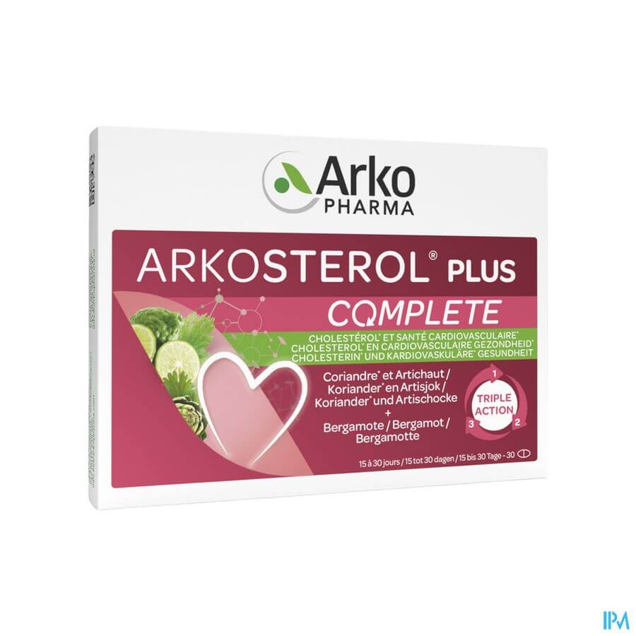 Arkosterol Plus Complete Caps 90 est un complément alimentaire disponible en pharmacie. Il ne peut se substituer à un mode de vie sain et à une alimentation variée et équilibrée. Ne prenez pas plus que la dose quotidienne recommandée indiquée sur l'emballage. Demandez conseil à votre pharmacien. Tenir hors de portée des enfants.